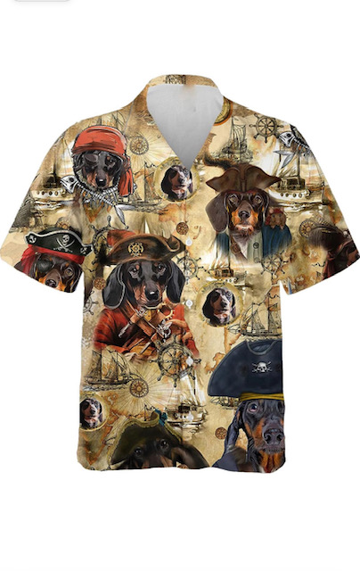 Super fun pirate themed shirt with dachshunds. Size small. Button closure. 100% Polyester, machine wash.