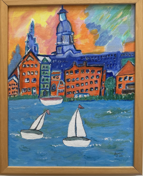 2011. Acrylic on canvas. 15 12 inches. Maple frame.