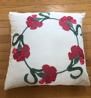 A lovely appliqued pillow handmade by Christine. The pillow is 18"x18"