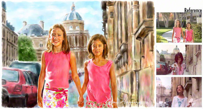 Your treasured photographs become Nomi's inspiration for your family's most cherished artwork. Email Nomi your favorite reference photographs, old or new. She will ship your painting directly to you. Passionate about portraiture and combining her mastery of fine art and technology, Nomi will work closely with you to create an original painting your family will love. As your portrait is painted, Nomi will email the work in progress for your feedback. Looking for a "surprise" portrait painting for an upcoming occasion? Birthday, Anniversary, The Holidays? Portrait paintings become the best gift ever for your special someone. Nomi is often asked to paint portraits of her clients' family members who have passed away. She is honored to be trusted with their personal memories. Additional hand-signed gift prints, on any size canvas or watercolor paper up to 30x40 inches, may be ordered at $250 each ($175 each if shipped at same time as original). Holiday cards are available. Certificate expires one year from purchase date and may not be used in conjunction with any other certificate or offer.  View more of Nomi's art on her website at www.nomiwagner.com