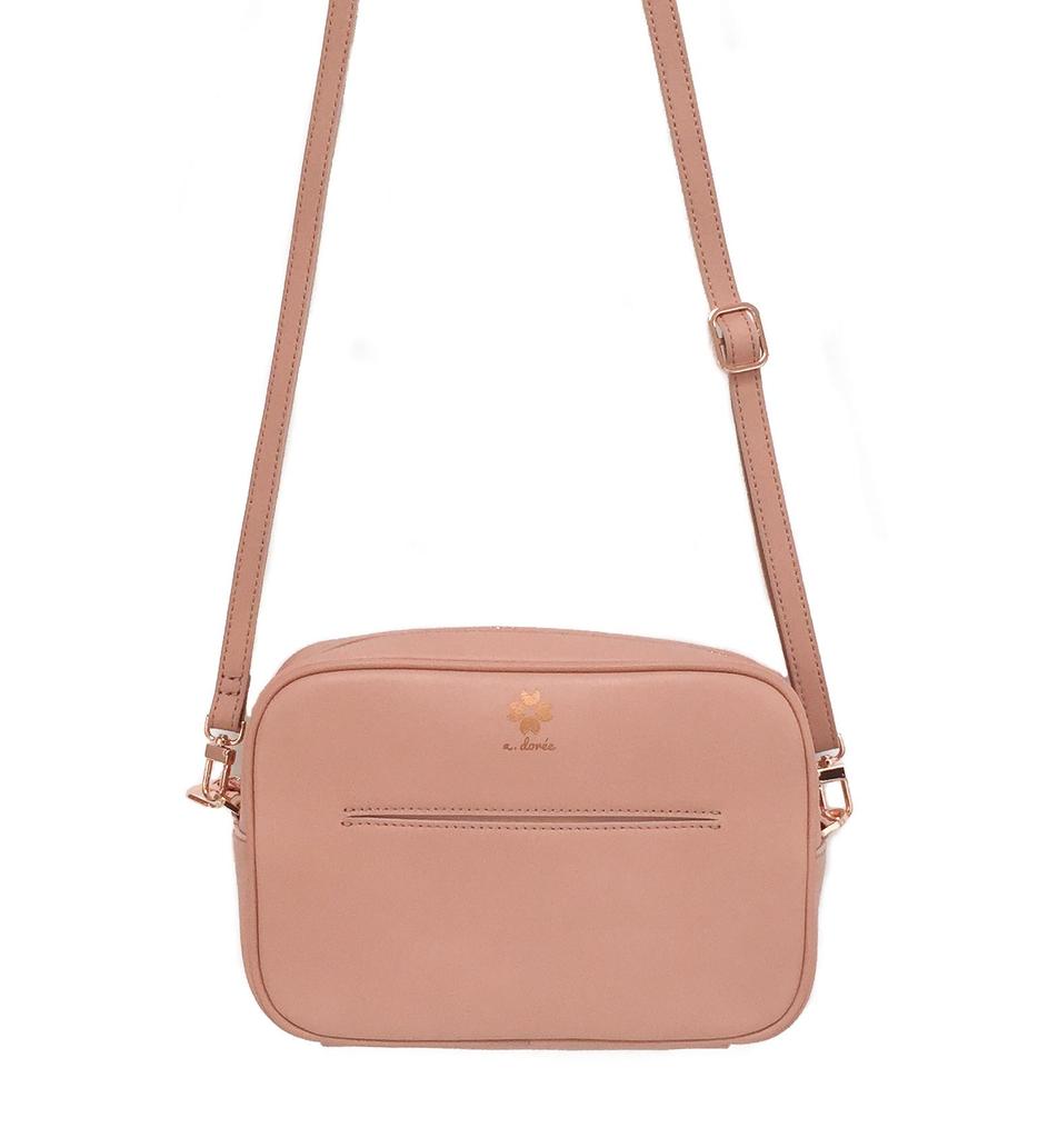 An effortless crossbody bag that complements any kind of outfit and carries all your essentials. Open pocket on the front side provides convenient access to tickets and receipts. The roomy interior will fit a continental wallet, cell phone, keys, and more. Adjustable shoulder strap accommodates all body heights and can be slung over one shoulder or worn as a crossbody. Comes with a. dorée dustbag.