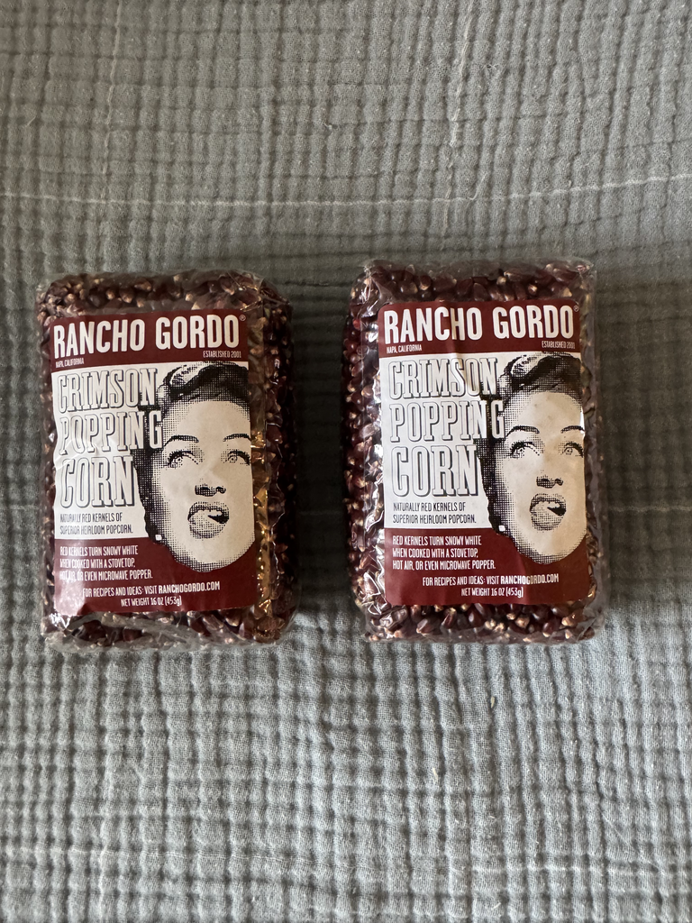 2 Packages of Heirloom Crimson Popcorn from Rancho Gordo