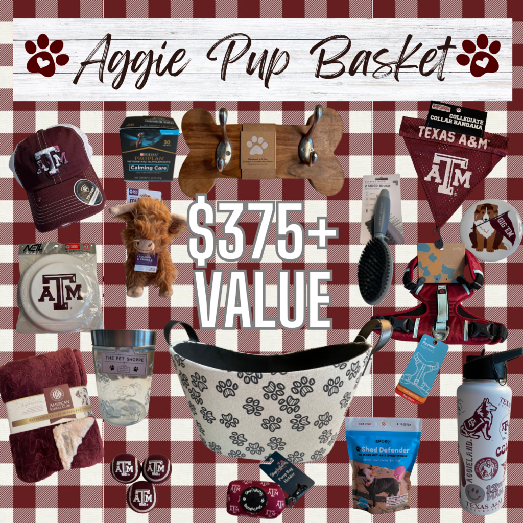 Show your pup?s Aggie pride with this ultimate tail-wagging bundle! The Aggie Pup Basket is packed with officially licensed Texas A&M gear and high-quality pet essentials. It includes: