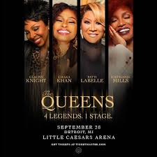 Music history will be made as four legendary voices come together for a breathtaking evening of vocal brilliance, electrifying energy, and mutual love. The iconic Chaka Khan, Patti LaBelle, Gladys Knight and Stephanie Mills will unite for an unforgettable tour, ?The Queens! 4 Legends. 1 Stage.? celebrating decades of timeless classics and cherished memories. The tour visits Little Caesars Arena on .