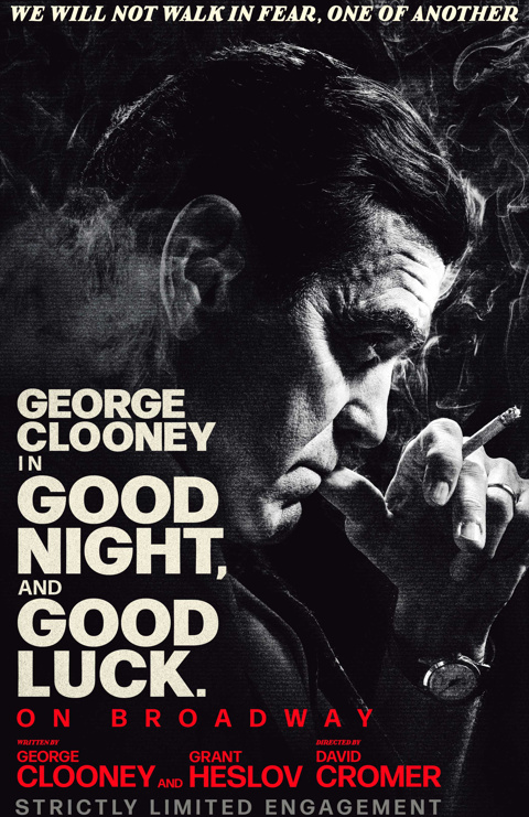 In a landmark theatrical event, two-time Academy AwardŽ winner George Clooney makes his Broadway debut in Good Night, and Good Luck, an electrifying stage adaptation of the critically acclaimed film. This is your chance to win exclusive house seats not available to the public. Tune into the golden age of broadcast journalism and Edward R. Murrow?s (Clooney) legendary, history-altering, on-air showdown with Senator Joseph McCarthy. As McCarthyism casts a shadow over America, Murrow and his news team choose to confront the growing tide of paranoia and propaganda, even if it means turning the federal government and a worried nation against them. Under the direction of Tony AwardŽ-winner David Cromer, from the original screenwriters Clooney and Grant Heslov, Good Night, and Good Luck chronicles a time in American history when truth and journalistic integrity stood up to fearmongering and disinformation?and won.