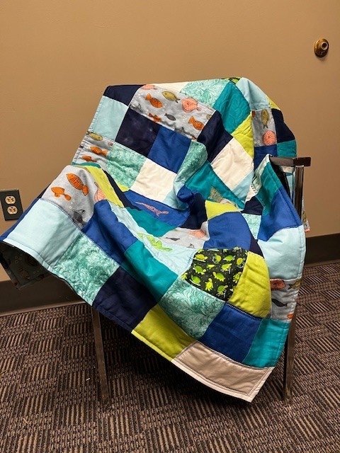 Shipping available - for this BEAUTIFUL one-of-a-kind Handmade Quilt, by EmmaLee Eng (Lead Animal Keeper at Riverside Reptiles Conservation Zoo in Connecticut). Design features Turtles, Fish, Marine Life in an array of Ocean Colors - and is locally-made and embroidered on a flannel-backing. Size is 4.5 feet by 3 feet. Winner can pick up for FREE in Enfield, Connecticut - or available for shipping with insurance.