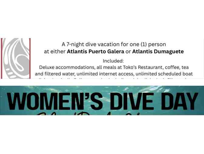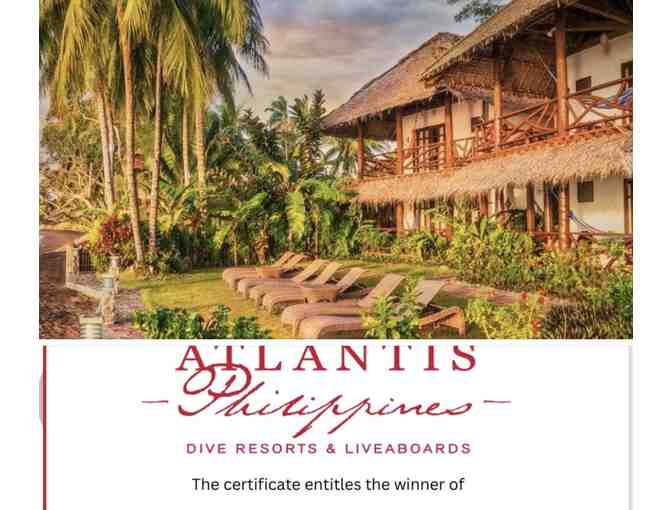 Meet Whale Sharks!!! This tris is valued at $3,690 - and was donated by Atlantis Resorts to H2O Planet's Nonprofit. It includes a "7-Night Dive Vacation" - at your choice of EITHER "Atlantis Puerto Galera" or "Atlantis Dumaguete". Certificate includes: Deluxe Accommodations (for 1 person); Unlimited Boat Diving (typically 5 dives per day, including Night Dives); ALL Resort Meals; Unlimited Internet Access; Air fills, Tanks, Weights, Weight Belts; coffee, tea, and water.