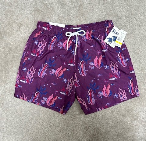 This item is PURPLE (Coral Reef Style Design) - Size ADULT MEDIUM. It's a NEW "Trunks Surf and Swim Company" brand Bathing Suit / Swim Trunks. Quick-dry technology, mesh lining, rear pocket with adhesive velcro to keep closed. Available for nationwide bidding. Item can be shipped to Winning Bidder or picked up for FREE in Enfield, CT after the Auction. Fun style, great fit!