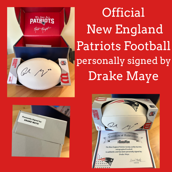 Signed personally by Drake Maye, New England Patriots Quarterback.