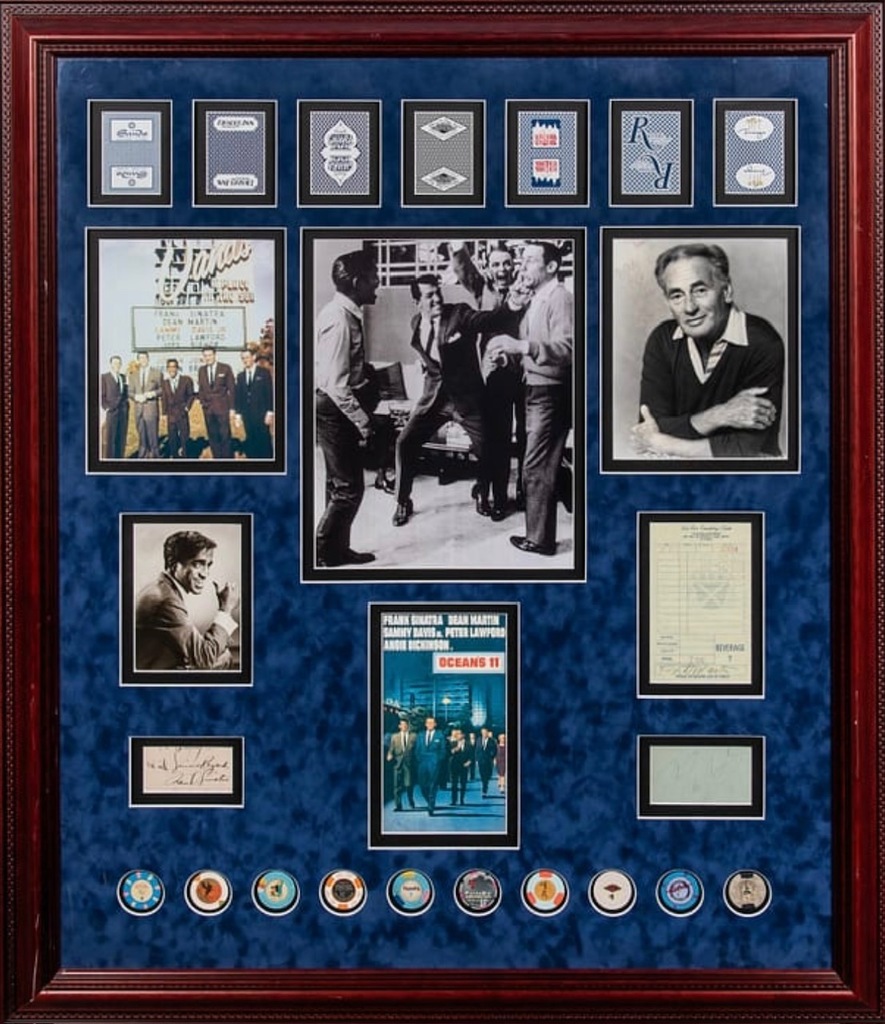 Rat Pack Ocean's 11 Autographed Las Vegas Display.  Signatures include Frank Sinatra, Sammy Davis Jr., Dean Martin, Joey Bishop and Peter Lawford, measures  37"x 42".  Comes with a certificate of authenticity.