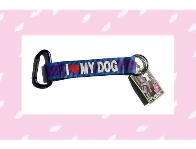 Blue, Purple and White with a Purple Carabiner to hook into your purse and a keyring on the end!! The mesh portion is approx 5" long.