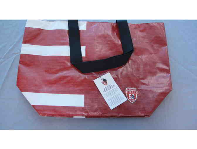 Rareform transforms old billboards into one-of-a-kind bags, and we have a few of their crimson bags left embroidered with the Title IX logo.