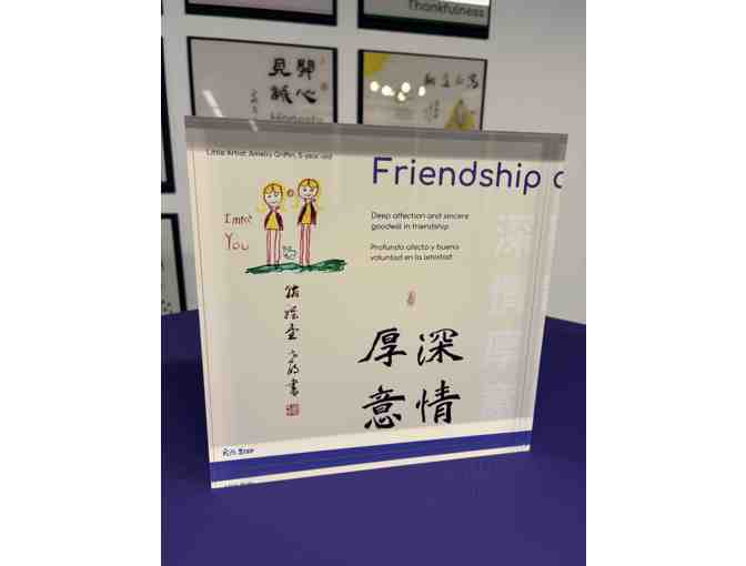 Friendship is a tender and joyful artwork created by five-year-old Amelia Griffin. It beautifully combines traditional Chinese calligraphy with the innocence of a child’s drawing, bridging timeless wisdom with youthful expression. The inscription translates as: “Deep affection and sincere goodwill in friendship,” and is also rendered in English and Spanish, highlighting how friendship transcends languages and cultures.