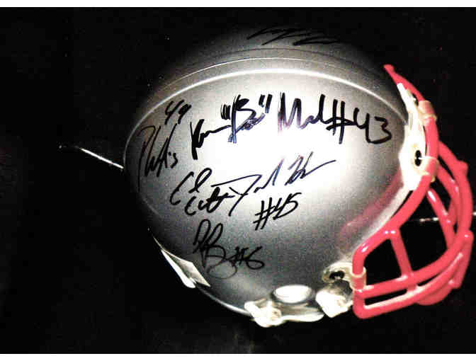 Very nice mini helmet signed by some great Line Backers during the 2007 Senior Bowl. Tony Taylor and Patrick Willis headline the LB's.