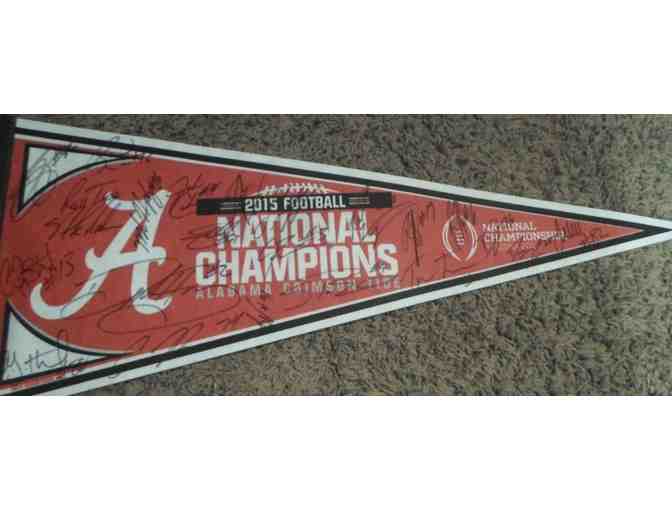 2015 University of Alabama Crimson Tide Football National Championship Autographed Pennant. Autographs include Nick Saban, Travis Henry, Jake Coker, Reggie Ragland, Lane Kiffin, Calvin Ridley, OJ Howard, Reuben Foster, etc. Comes with certificate of authenticity.