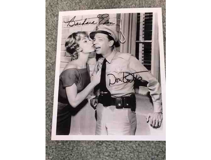 Don Knotts Barbara Eden Barney Fife Signed Photo. Comes with certificate of authenticity.