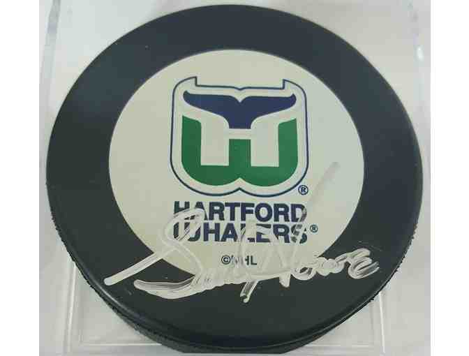 Gordie Howie Hartford Whalers Autographed Puck. Comes with certificate of authenticity.