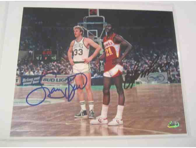 Larry Bird Boston Celtics Atlanta Hawks Dominique Wilkins Autographed Photo. Comes with certificate of authenticity.