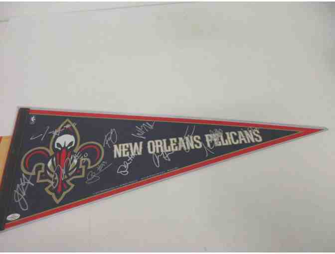 New Orleans Pelicans Autographed Pennant with Jrue Holiday and Solomon Hill. Comes with certificate of authenticity.