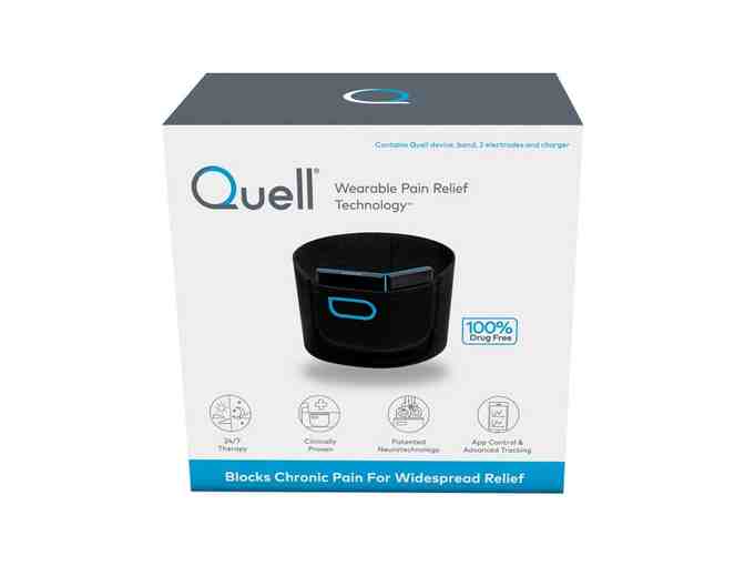 Quell is a revolutionary new technology, wearable intensive nerve stimulation, that is clinically proven to help you manage chronic pain. It is 100% drug free and doctor recommended. Quell is FDA cleared for 24/7 use, during the day while active and at night while sleeping, so you can get relief when and where you need it. Worn just below the knee and activated by simply clicking a button, Quell taps into your body’s natural pain relief response, blocking pain signals to deliver widespread pain relief. Quell’s patented OptiTherapy technology automatically adjusts therapy and dose to ensure you receive optimal pain relief. In a recent clinical study, 81% reported improvement in chronic pain and 67% reported a reduction in their pain medication use. The Quell iOS and Android apps will further enhance your Quell experience. Start and stop therapy sessions, as well as adjust the intensity of therapy from the Quell app on your smartphone. You can also review therapy and sleep trends over time. Advanced sleep insights allow you to monitor 8 important dimensions of sleep such as sleep quality and time asleep as well as your body movement and position during the night, giving you even more insight into your chronic pain management. Each Quell starter kit includes: 1 Quell device, 1 wearable sports band, 1 month supply of electrodes (2 electrodes) and 1 charger cable and 1 charger adapter. Quell is not likely to be effective in treating migraines or headaches.