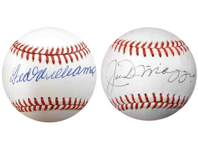 The winning bidder selects the hand signed baseball from the legend of their choice: Ted Williams or Joe DiMaggio