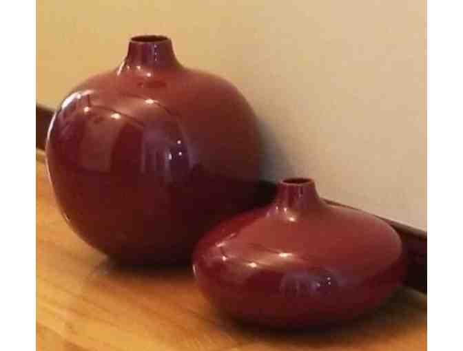 Two Red Round Ceramic Vases
