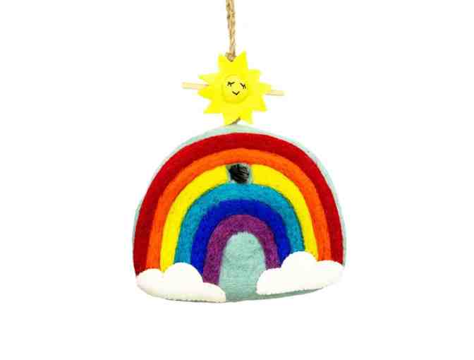 The original hand felted birdhouse! Made for wren, common all over North America, you can hang this charmer outdoors in a protected area (on a porch) where wrens like to nest.  (Includes clean-out hole for outdoor use). Another option is to keep it indoors and use as a piggy bank, tooth fairy house, etc. A fun and educational gift! Made in Nepal with sustainably-harvested, water-resistant sheep wool, jute hanging cord & bamboo perch.