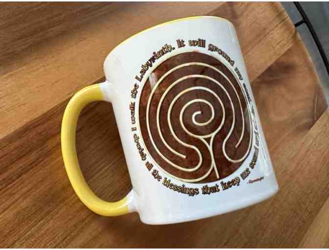 The cheerful sunshine yellow of the interior and handle of this mug make it a great way to brighten up your day. This mug features a labyrinth design on both sides and reads "I walk the labyrinth. It will ground my soul. I cherish the blessings that keep me sound and whole."