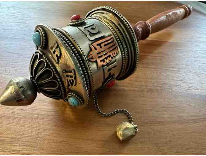 This unique addition to our auction comes from John Ridder of PaxWorks. Continue the work of this lovingly used prayer wheel by bringing it home with a winning bid! You can see in the pictures how beautifully worn it is. Measures approximately 8.5 inches in length.