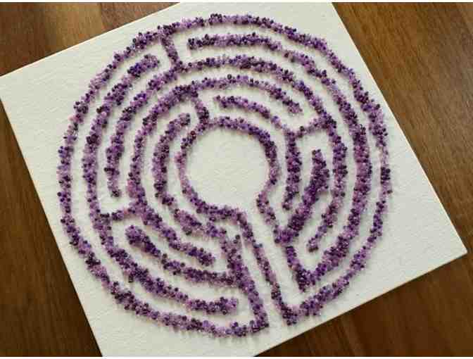 You will receive a beautiful purple-hued, hand-beaded finger labyrinth and materials to make a second multi-colored labyrinth to give as a gift or frame as art.