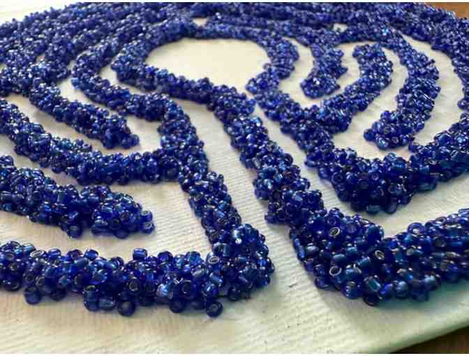 You will receive a beautiful blue-colored, hand-beaded finger labyrinth and materials to make a second bronze labyrinth to give as a gift or frame as art.