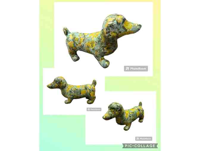 You are bidding on a ceramic decoupaged dachshund. Bonnie created a work of art with this piece! It is 10.5" long and stands 6" tall.