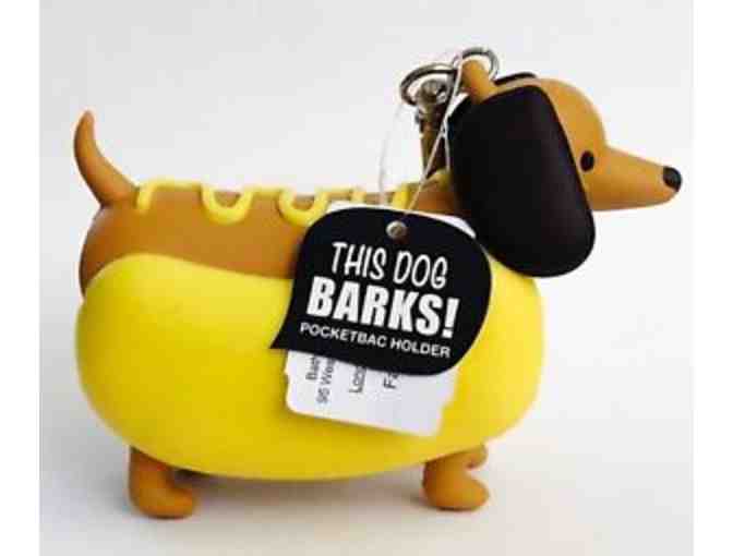 Did you miss out on this!!!??? Bath and Body Works exclusive hand sanitizer holder. Guard your favorite PocketBac and scare germs away with the help of this barking hot dog holder. Just squeeze to hear him bark. The convenient silver tone clip attaches to your backpack, purse and more so you can always keep your favorite sanitizer close at hand. Dispenser holds the Oval Shaped PocketBac Gel Hand Sanitizers, sold at Bath And Body Works. There is no sanitizer included.