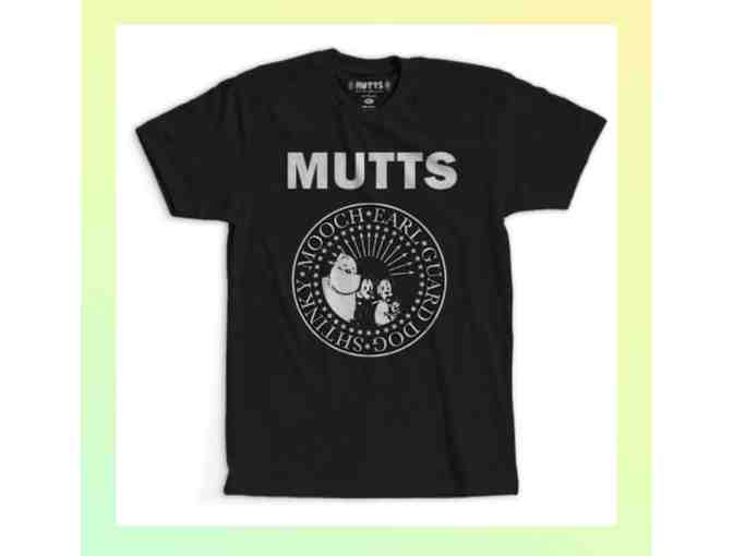 Brand new in original manufactur packaging. XL shirt has Mooch, Earl, Guard Dog, and Shtinky Puddin on it. A must have for any Mutts Fan! Measures 21" under arms and is 30" long.