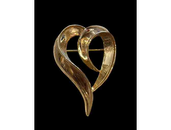 Gold-tone heart shaped pin. 2" long by 1.25" wide. Beautiful!