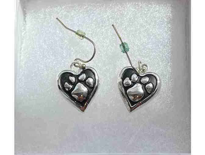 Sterling Silver pierced earrings hearts with paw prints From "Together we can make a difference". The are stunning at 5/8" long. Sterling Silver!!