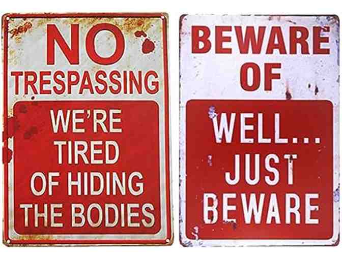 No Trespassing We're Tired of Hiding The Bodies & Beware of Well Just Beware 8" x 12" Retro Metal Sign Vintage Bar Decor Yard Signs - 2 PCS