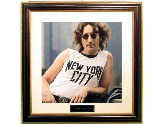 Framed Photograph of John Lennon in a Vintage NYC T-Shirt