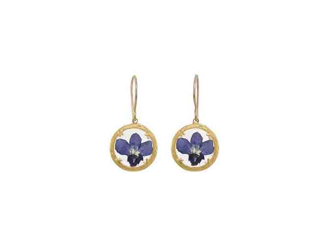 The natural beauty of an alpine meadow - delicate shapes and bright bursts of color - is captured in still life inside this two-sided glass chamber. These earrings are subtly enhanced by a frame of organically styled, softly textured branches. The tiny landscape of dried flowers brings the delight of discovery wherever they go. Handmade in Hawaii.