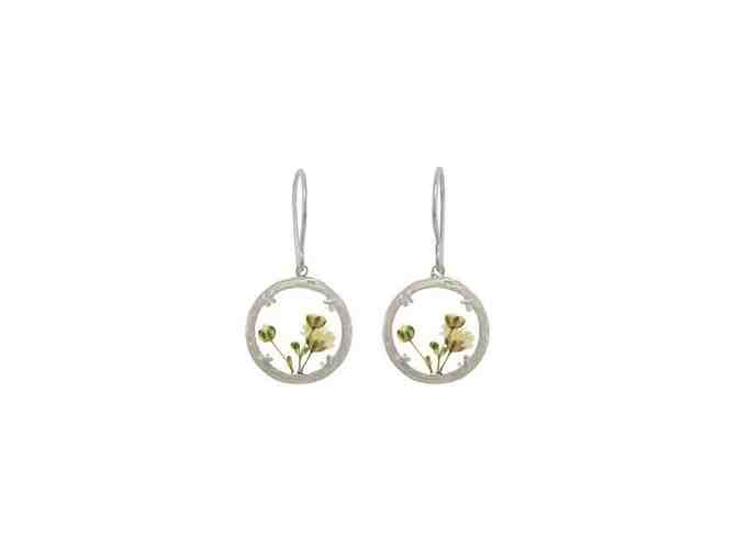 The natural beauty of an alpine meadow - delicate shapes and bright bursts of color - is captured in still life inside this two-sided glass chamber. These earrings are subtly enhanced by a frame of organically styled, softly textured branches. The tiny landscape of dried flowers brings the delight of discovery wherever they go. Handmade in Hawaii.