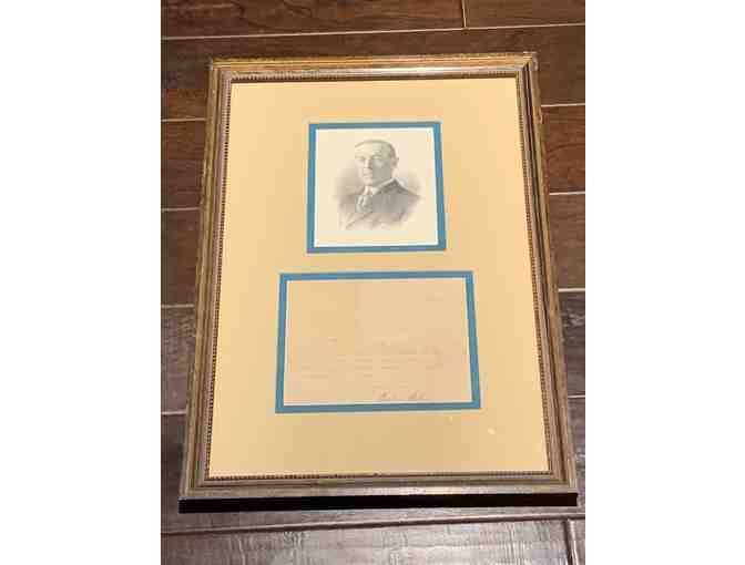 President Woodrow Wilson Autographed Display. 28th president of the United States from 1913 to 1921. Wilson also served as the president of Princeton University and as the governor of New Jersey before winning the 1912 presidential election. He was the leading architect of the League of Nations, and had a progressive stance on foreign policy. Comes with certificate of authenticity.