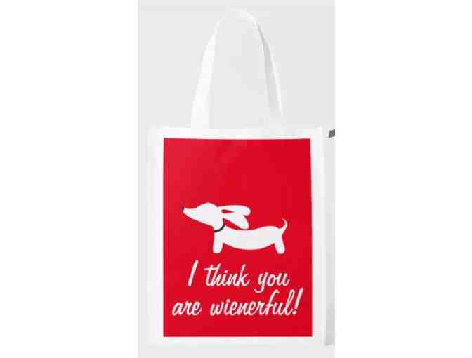 Bag up your grocery goods, beach supplies, or use as a reusable gift bag for Christmas, Valentine's or Anytime with this Wienerful tote bag.