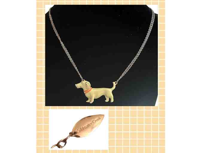 This beautiful necklace is from the "old" Coldwater Creek if you know what I mean! It is a beautiful enamel with sparkling chips in the collar. It measures approx. 1.75" x 1". It has an adjustable gold-tone chain.