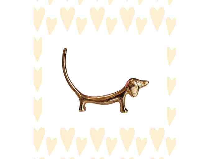 Gold-tone Dachshund Ring Holder with rhinestone eyes - 'vintage'