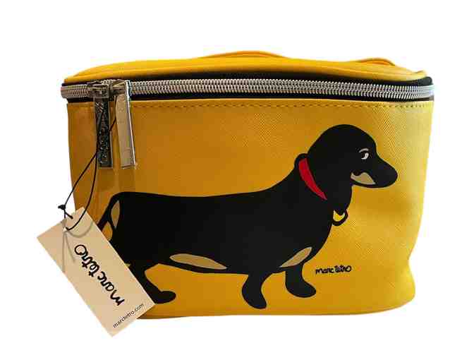Everyone loves the Marc Tetro Dachshund collection! Here's the much sought after cosmetic case! It measures approx 6" tall x 8.5" wide and 6" deep.
