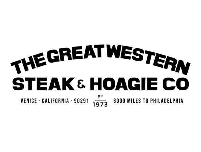 $50 gift food certificate for The Great Western Steak & Hoagie Company. Located at 1720 Lincoln Blvd, Venice, CA 90291 (Lincoln & Superba Ave). The best Philly Cheese Steak! Philadelphia is 3,000 miles away, EAT HERE!