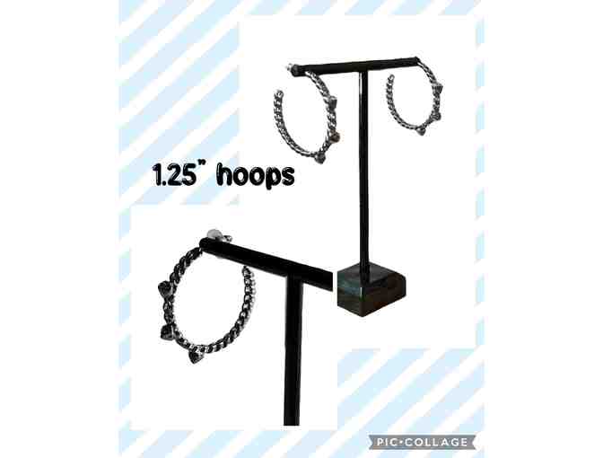 Beautiful silver tone earrings! Large: 1.25" in diameter.