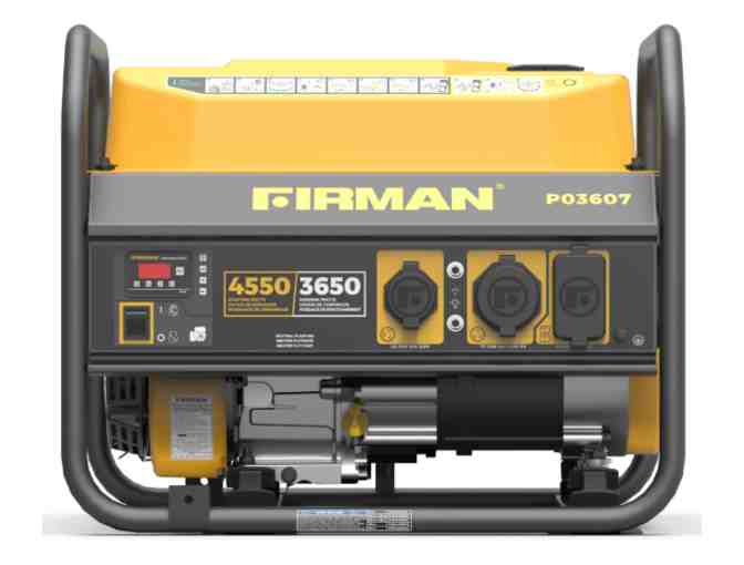 The Firman P03607 generator features 4550 starting Watts and 3650 running watts. Power is supplied by our Max Pro Series 208cc Firman engine which runs cool and efficient thanks to its Phoenix Fat Head Block. Our Whisper Series muffler keeps the P03607 running a quiet 68 decibels – well below the standards set by the National Parks Service, and our spark arrester has been approved by the USDA Forest Service. The industry-leading 5 gallon fuel capacity provides a whopping 14 hours of run time. Our rubberized thresher handle makes recoil starting a snap – even with bulky gloves. The Firman Volt Lock automatic voltage regulator ensures clean, consistent power output from the Firman Power Stream alternator. Pertinent information is at your fingertips with our 4-in-1 data minder measuring Volts, Hertz, Hours and a low oil indicator. The durable, compact tubular roll cage frame design is built for years of use. Just add gas! Everything you need comes standard in the box including: oil, funnel, owner’s manual, spark plug wrench, and two wrenches to remove protective shipping brackets.