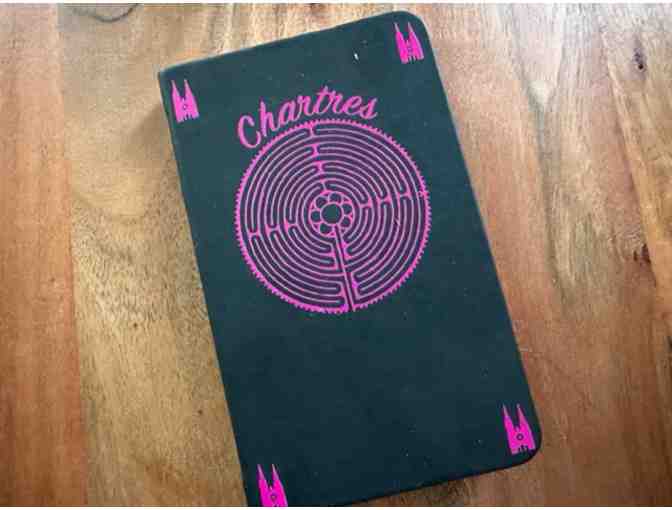 This item comes to our 2023 Auction directly from Chartes, France where Veriditas founder Lauren Artress chose it for our lucky winning bidder. The blank journal features hot-pink edged paper, a satin ribbon to keep your place and a handy elastic band to keep it shut while not in use.