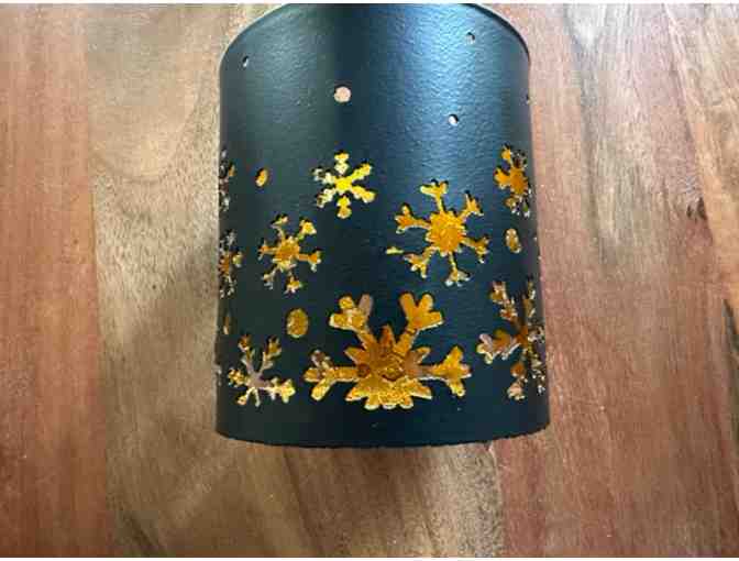 It was difficult to decide if this should be listed in our holiday section or "direct from Chartres" section in our 2023 auction because it really does fit both requirements. However, the festive feel of the gold metallic interior contrasting the deep black of the exterior of this candle holder... and the way the snowflakes shine when a candle is inside really leaves us feeling warm and cozy. Let it Snow!